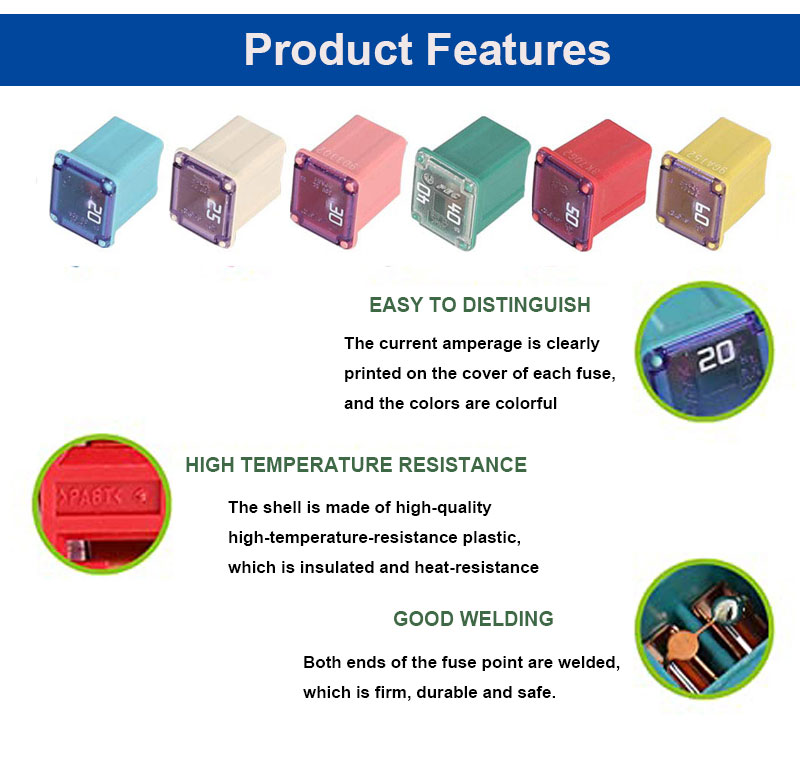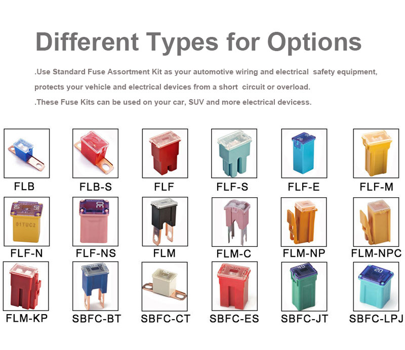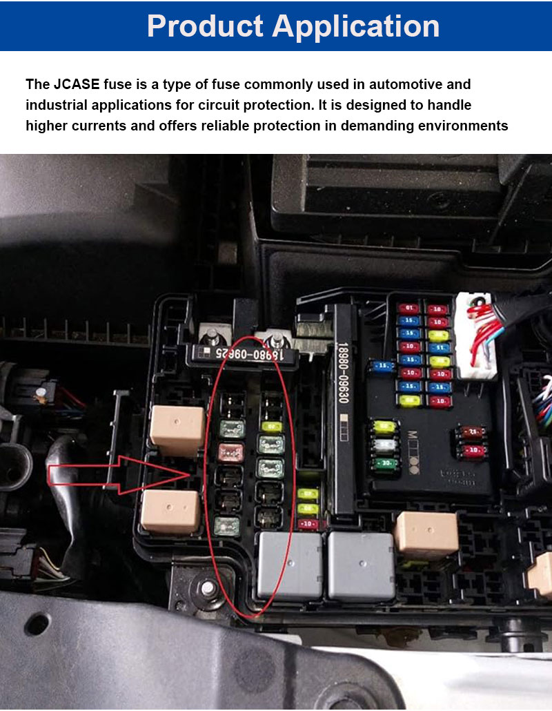 Car Cartridge Automotive Jcase Fuses Assortment Kit Low Profile and Tall Standard Box Shaped Fuses 20A 30A 40A 50A 60A